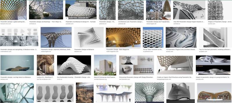 We doen even een stapje terug; Wat is parametrisch ontwerpen? Als we een Google-search uitvoeren op deze term worden allerlei organische figuren zichtbaar, bijzondere vlakdelingen en repetities van kleinere elementen tot bijzondere vormen. Als we de term “Architectuur” toevoegen veranderd dit beeld niet. Parametrisch ontwerpen lijkt gekoppeld te zijn aan natuurlijke en vloeiende lijnen. De grafische component is hier duidelijk zichtbaar. Is dit parametrisch ontwerpen?